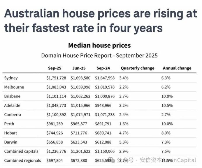 雪梨(175萬澳元)、布里斯班(110萬澳元)與墨爾本(108.3萬澳元)形成新價格梯隊,偏遠地區呈現補漲趨勢。