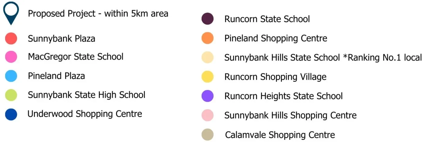 項目距區內三個最大型購物中心車程約 10–15 分鐘,步行至公交交通僅需 5 分鐘,交通十分便利。
